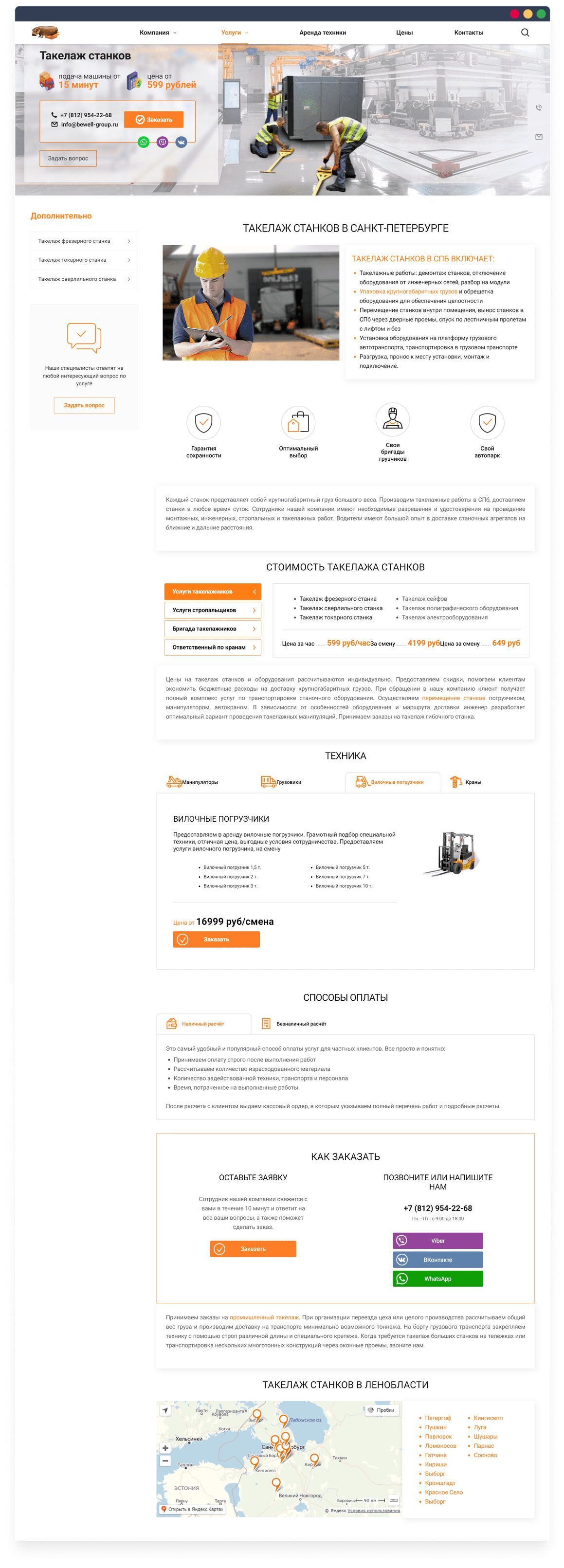 Цель: создать сайт по предоставлению такелажных услуг с соответствующим дизайном, удобным интерфейсом и понятной навигацией. Сделать ресурс конкурентоспособным, подготовить к дальнейшему продвижению в поисковых системах, в том числе и по регионам. Качественно представить услуги и тщательно проработать мобильную версию сайта.
